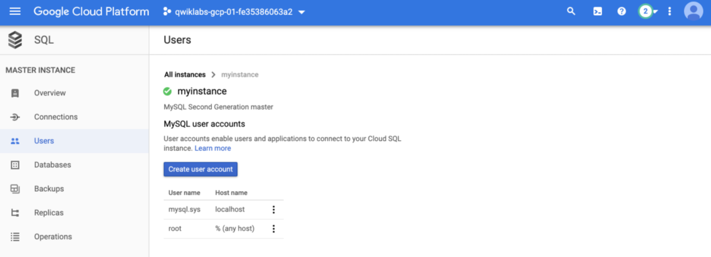 Check that there is a Cloud SQL instance