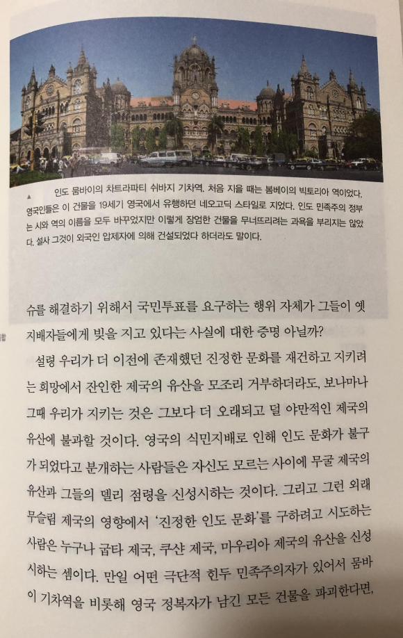 우리 나라도 마찬가지이다. 조금만 살펴보면 여기 저기에서 일제가 뿌린 잔재들이 튀어 나온다. 우리가 무엇인가 바꿀수 없는 위치에 있다면 최소한 그에 대한 역사가 있는 지 정도는 잊지 말아야 하지 않을까 생각한다.