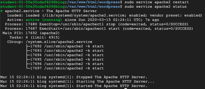 sudo service apache2 restart