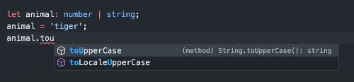 number 와 string 으로 선언했지만 값 할당을 통해서 string 타입으로 확인되었기 때문에 string 관련 메소드만 사용 가능 하다.